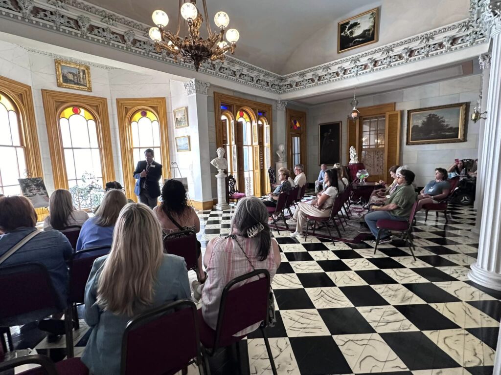 2025 SEO To-Do List for Wedding Venue Owners, wedding venue owners and managers on the stairs at a wedding venue education session in Dallas