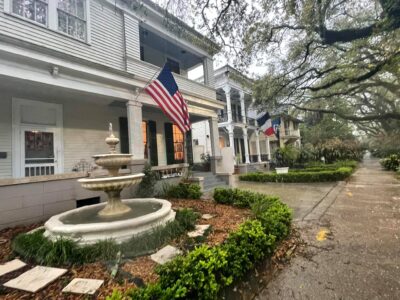 - Stepping off the Riverbend Charters Shuttle in the pouring rain to see David Villarubia & The Degas House team greeting us with umbrellas and champagne as we exited the shuttle! They got soaked making sure every one of us made it to the entrance under an umbrella! The experience we had at The Degas House was absolutely incredible. We enjoyed an authentic New Orleans lunch with champagne, bloody Mary’s, delicious desserts and later a snack of gourmet grilled cheese!